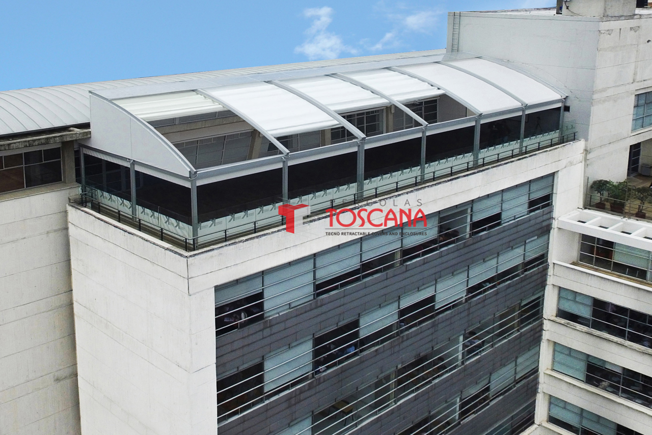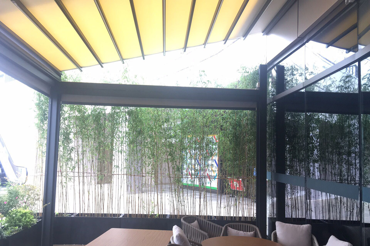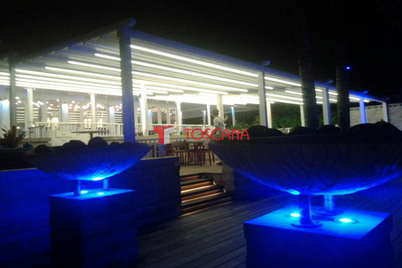PergoTek 是一種軌道天篷和伸(shēn)縮遮陽篷的結合。布料通過特製(zhì)的電機隨鋁製軌道(dào)伸縮移動,打開時可讓客戶感受大自然的陽光與空氣,閉合後可以(yǐ)100%防水並有效遮擋陽光。產品能最低承受(shòu)50km/h的風(fēng)力。目前最大的寬度長達13.5m,外飄伸展:12m。 產品用途:酒吧街(jiē)、星級(jí)酒店、星級 餐廳、豪華別墅區等高端(duān)商業場所(suǒ);泳池、花園、露台等私人豪華住宅區;園林配套設施工程等。