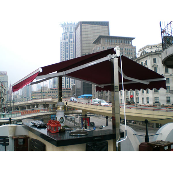 遮陽棚,商業用(yòng)品,係統(tǒng)利用電機帶動鋁合金卷管轉動,使卷繞在卷管(guǎn)上的麵料上升,下降。同時靠手臂支撐杆內的彈簧作用力